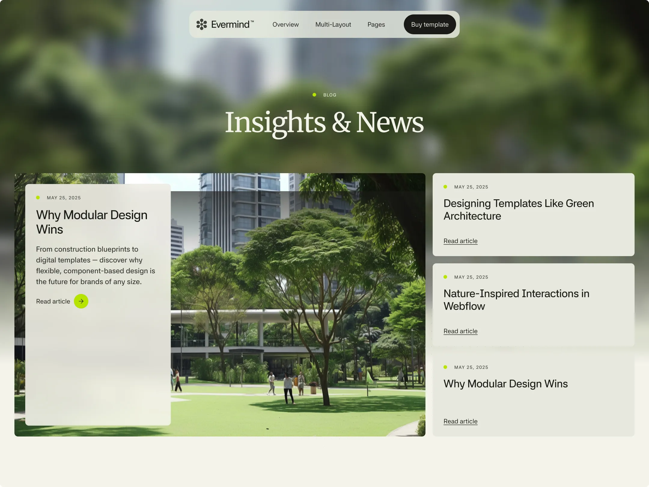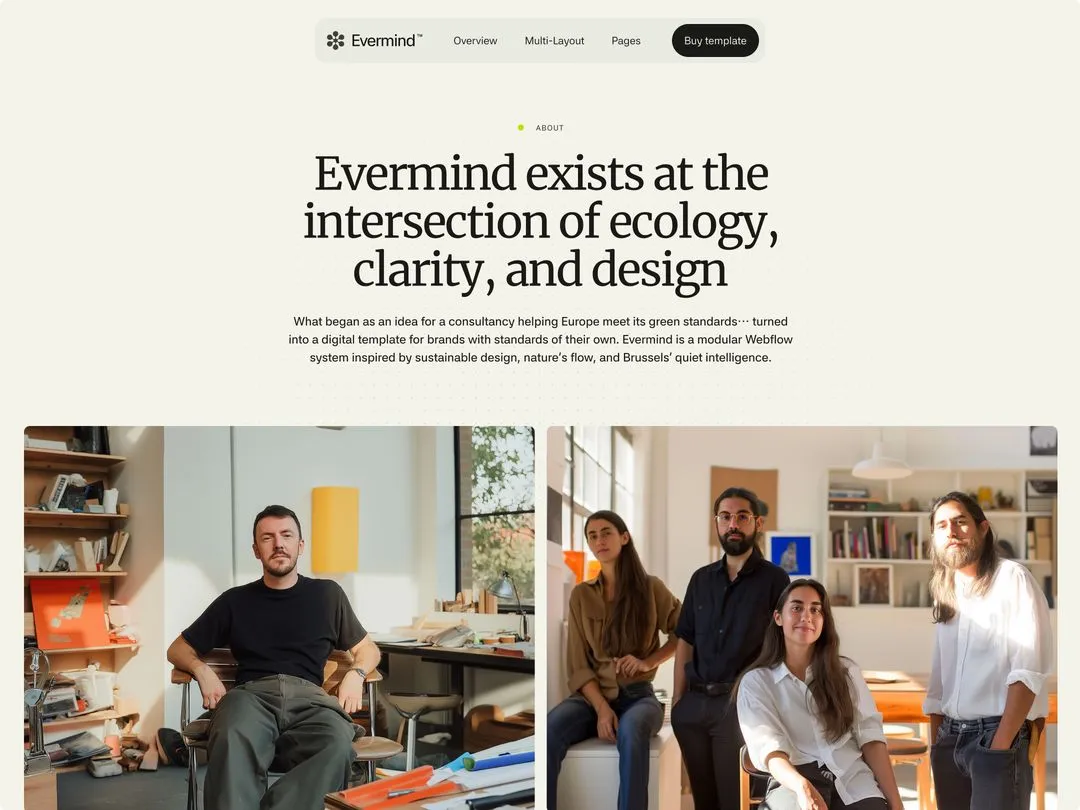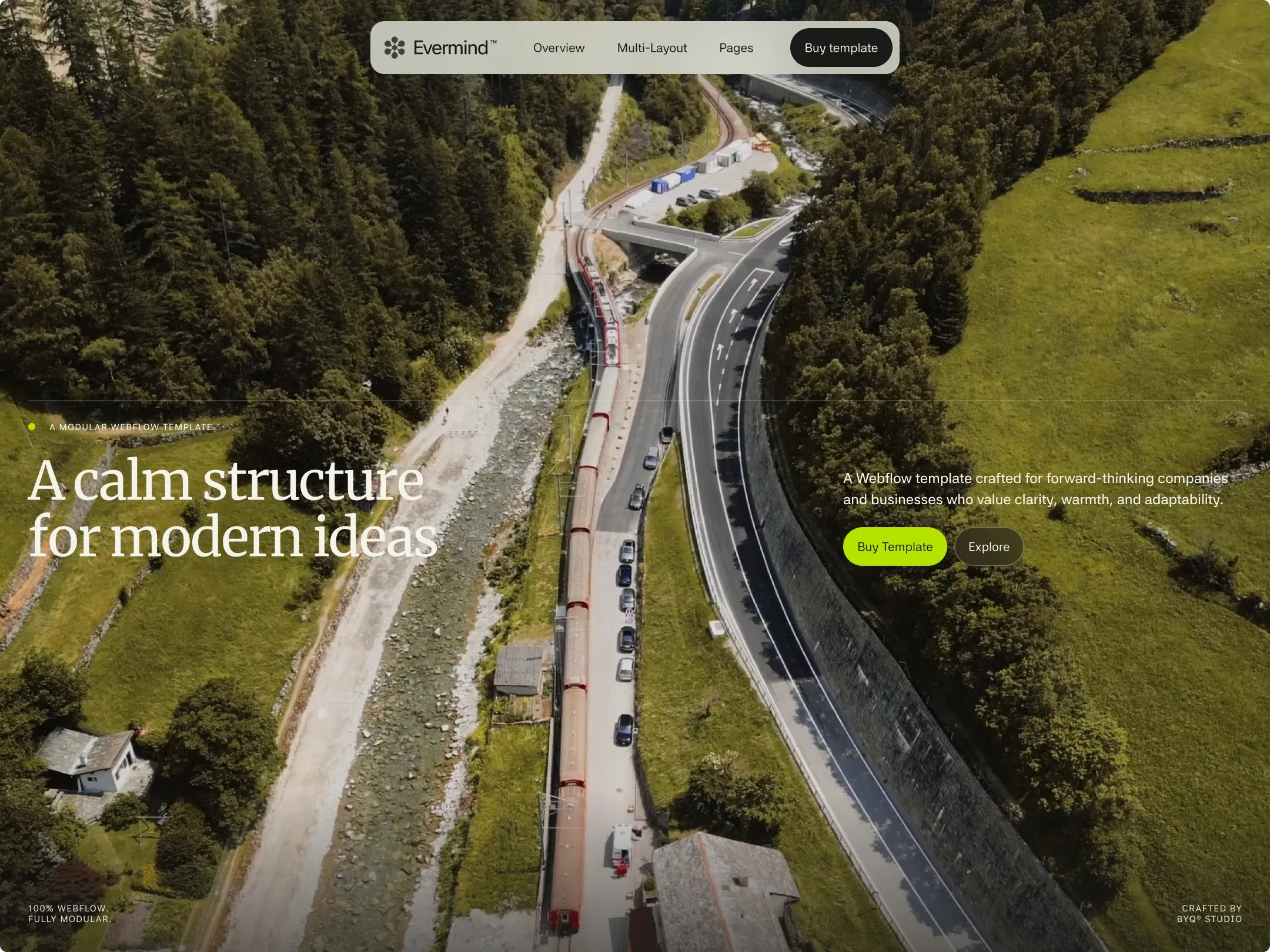 Not just. Evermind™ is more like a design framework — clean, modular, and future-proof, just like sustainable architecture. It’s built with Webflow variables and a clear logic that makes customization effortless.