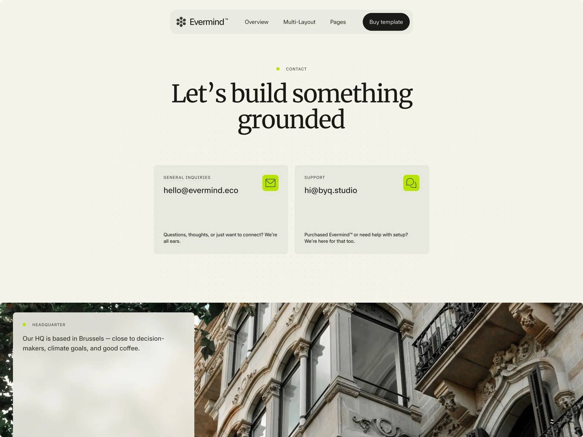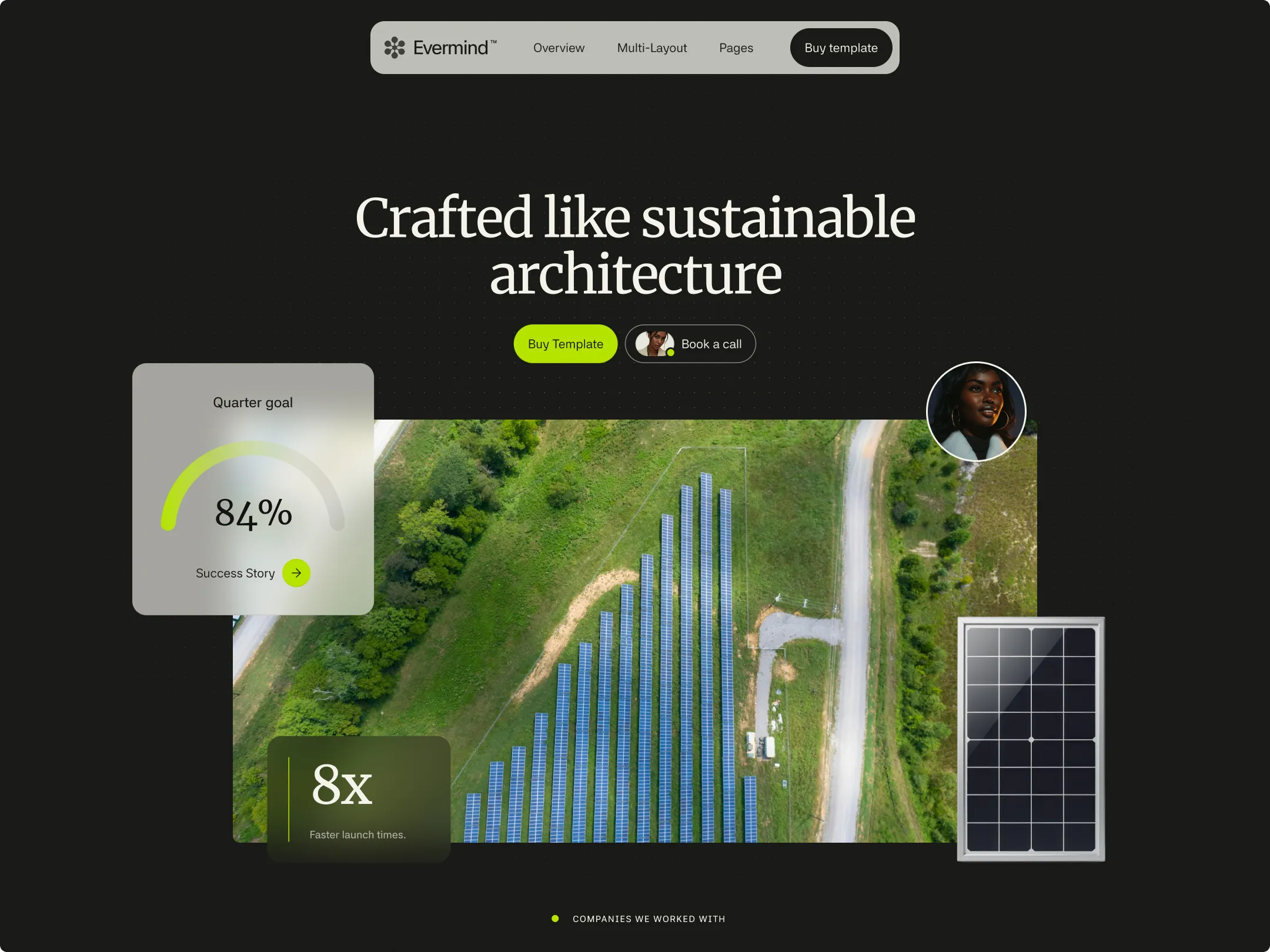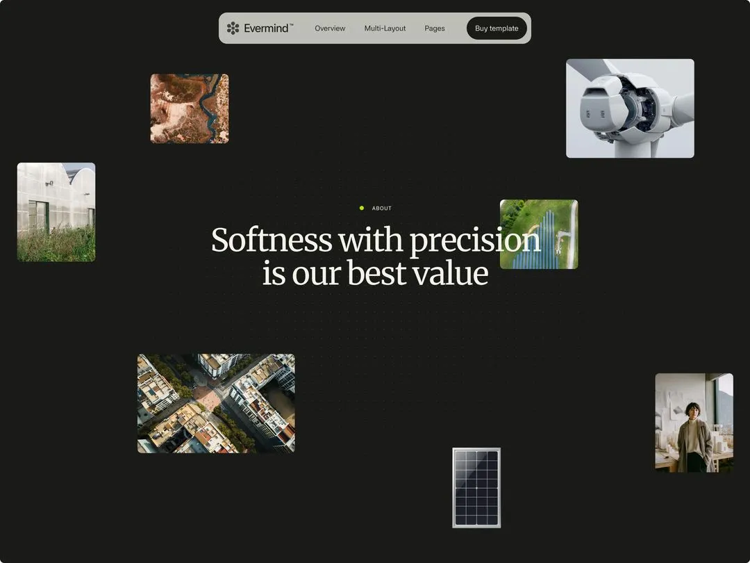 Not just. Evermind™ is more like a design framework — clean, modular, and future-proof, just like sustainable architecture. It’s built with Webflow variables and a clear logic that makes customization effortless.